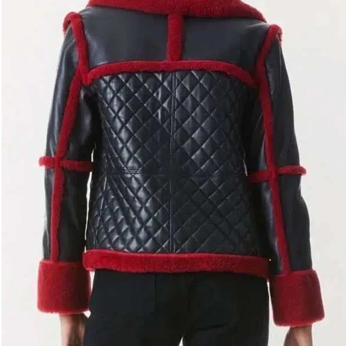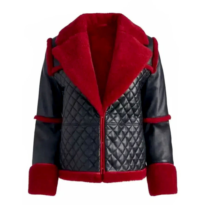 This black and red aviator jacket combines classic flight-jacket styling with a bold modern twist. Crafted from premium black leather and lined with vibrant red faux shearling, it offers warmth, structure, and a striking contrast that elevates any outfit. The fitted silhouette, ribbed trims, smooth zipper, and practical pockets make it a versatile piece that pairs effortlessly with jeans, skirts, or statement looks.