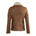 This Jane aviator jacket offers a modern, feminine take on the classic bomber silhouette. Crafted from a blend of real and faux leather and lined with soft viscose, it features a plush shearling-style collar, smooth zipper closure, and ribbed cuffs for a refined, cozy fit. The warm interior, practical pockets, and rich brown tone make it a versatile piece that pairs effortlessly with both relaxed and polished outfits.